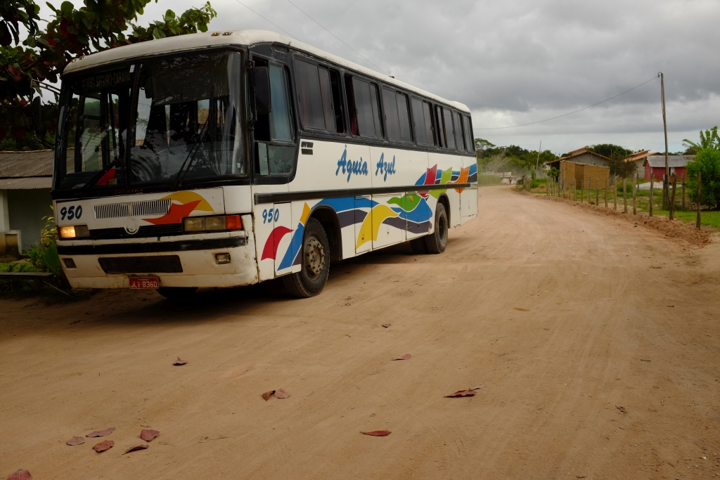 Autobus de Trancoso à Caraïva, sur la côte brésilienne. Pas des plus confortables, mais à l’heure!