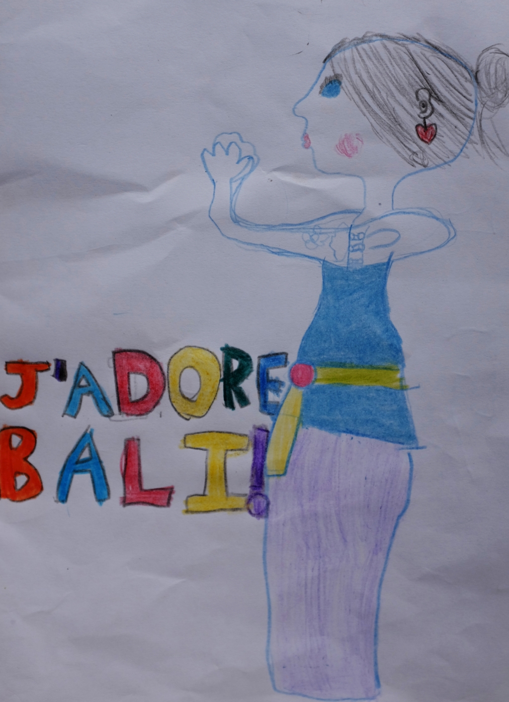 Voilà le collage et le dessin (d’une balinaise) faits par ma soeur Maëlle: