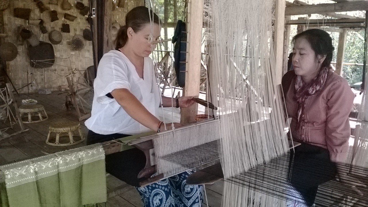 -Ock-pop-tok, un centre de tissage de soie où des artisanes travaillent et vendent leurs produits. On peut le visiter et y suivre des cours. J’ai appris à teindre et à tisser de la soie: Une des plus belles journées de mon voyage. J’y suis donc retournée avec les filles. Les artisanes et les guides sont passionnés et passionnants!