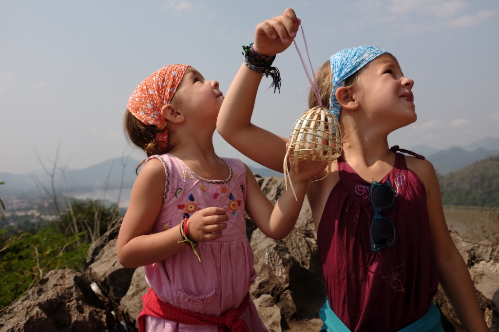 -Sortie d’un jour aux chutes Kuang Si. Escalade pour les filles, baignade pour toute la famille, sieste dans le tuk-tuk au retour. Vraiment chouette!